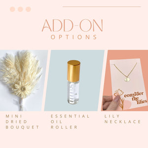 We ship directly to the address provided at checkout. If this care package is a gift, please be sure to enter the recipient’s address. To include a personalized note, simply provide your message and the sender’s name in the “Order Notes” section right before checkout. If you’re unsure what to say for this occasion, email me at hello@duetojoy.com—I’d be happy to offer gentle suggestions. Please don’t hesitate to reach out with any questions!